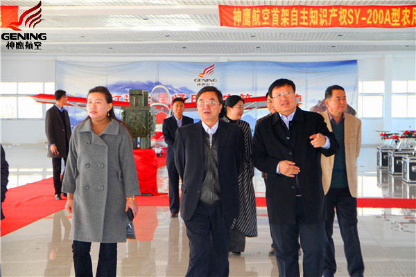 高海濤巡視員及工作組參觀了通遼市神鷹飛機(jī)制造在限公司。通遼市神鷹通用航空有限公司董事長邱志剛向檢查組詳細(xì)介紹了“SY-200”農(nóng)用飛機(jī)和植保無人機(jī)研發(fā)制造情況,匯報了公司當(dāng)前和今后的發(fā)展目標(biāo)和方向。期間,高海濤巡視員還親切地詢問了公司在發(fā)展建設(shè)中遇到的困難。