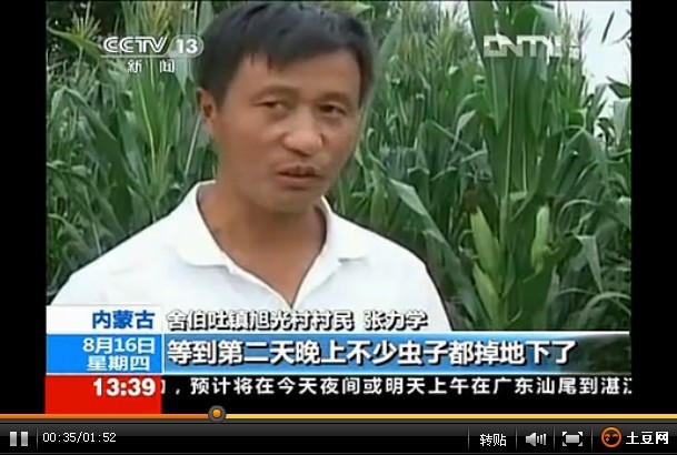 2013年,河南,山西,東北等多地爆發(fā)玉米粘蟲(chóng)災(zāi)害,東北玉米粘蟲(chóng)發(fā)生現(xiàn)狀遼西地區(qū)和通遼地區(qū)二、三齡幼蟲(chóng)中等發(fā)生,雙遼三、四齡幼蟲(chóng)偏重發(fā)生,松原地區(qū)二、三齡幼蟲(chóng)中等發(fā),白城地區(qū)四、五齡幼蟲(chóng)偏重發(fā)生,綏化地區(qū)四、五齡幼中偏重發(fā)生。